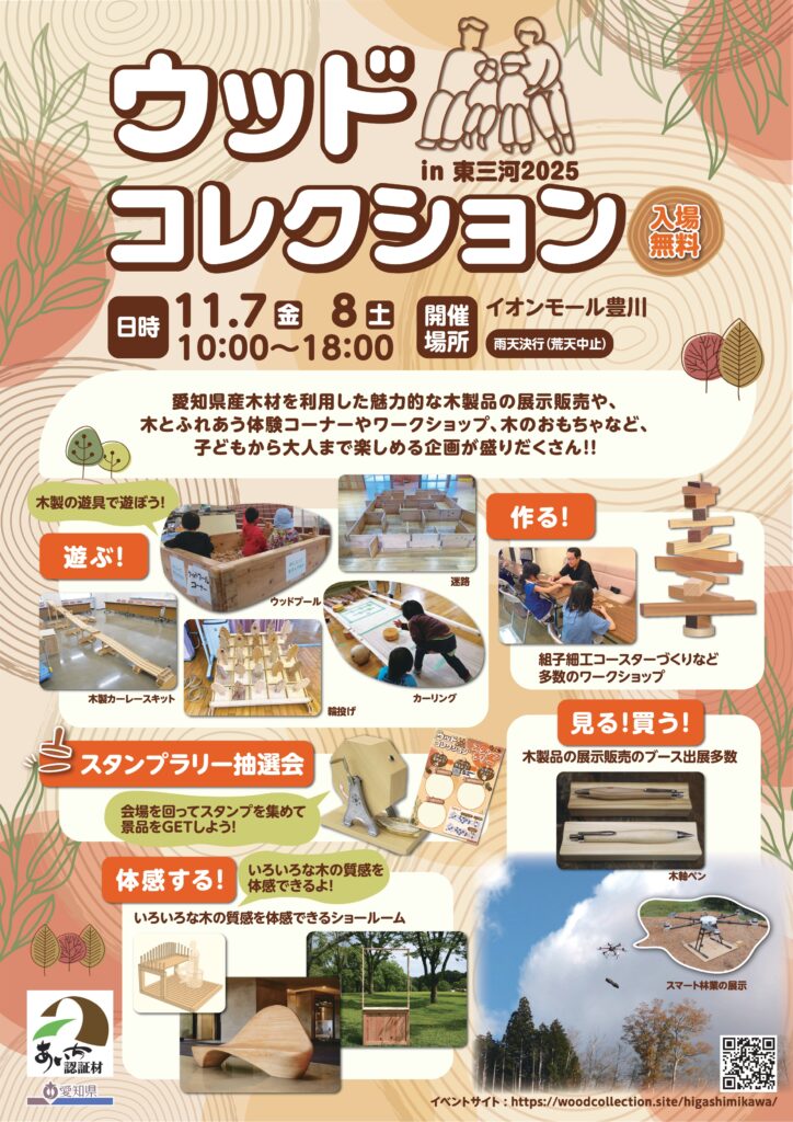 11月7日(金曜日)・8日(土曜日)の2日間、愛知県主催の「ウッドコレクションin東三河 2025」がイオンモール豊川で開催されます。