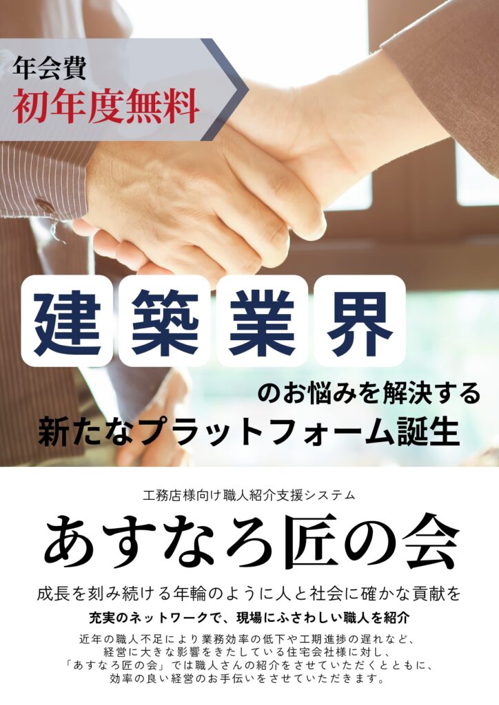 弊社ではそのような市場を背景に、「あすなろ匠の会」を新たなプラットフォームとして立ち上げました。