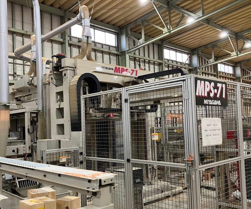 弊社プレカット工場では、超大断面加工機【MPS-71】により、一般的な流通材から大型物件に使用する大断面材の加工や、それらに加えて従来では実現できなかった複雑な加工を行っております。